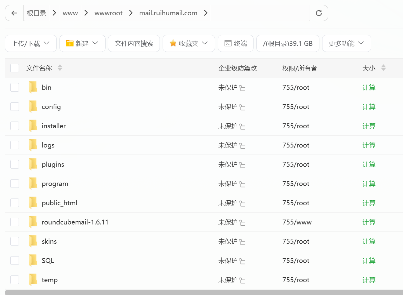 2,roundcubemail-1.6.7.tar.gz解压后,将roundcubemail-1.6.7文件夹内的文件上传到网站根目录。